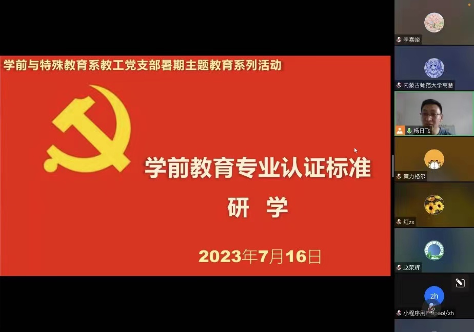 根据校院两级党委关于持续推进主题教育,推动主题教育走深走实的要求,7月16日晚,在公司教学工作会议结束以后,学前与特殊教育系教工党支部围绕学前教育专业认证工作,组织开展学前教育专业认证标准研学主题教育活动。支部全体党员及系部分教师参加了此次活动,活动由支部书记杨日飞同志主持。