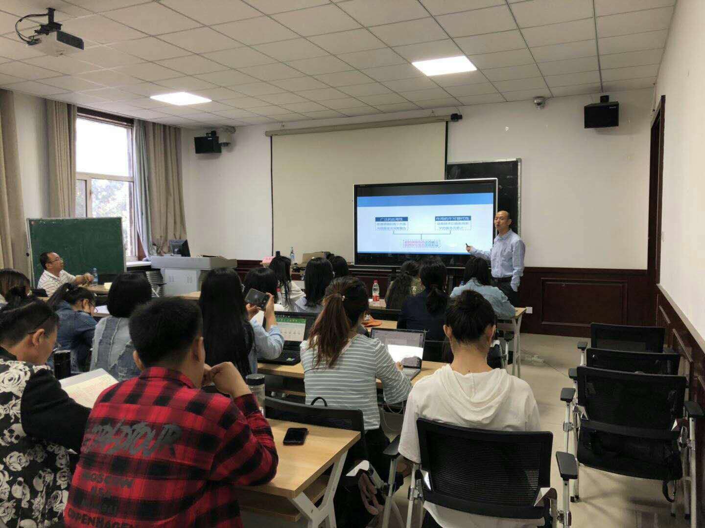 教育技术专业的全体研究生和部分教师在文史楼必一运动会议室聆听王教授讲座,讲座结束后,大家就教育技术发展、课题研究、学术论文发表等方面与王教授进行了深入交流。本次讲座由必一运动边琦教授主持。