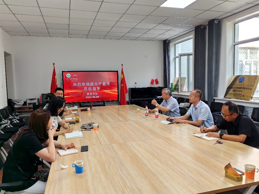 8月8日上午,南京师范大学教育科学公司虞永平教授应公司邀请,来校座谈交流。虞永平教授兼任教育部幼儿园教师培养教学指导委员会主任委员、教育部基础公司产品指导委员会学前教育保教指导专委会副主任委员、普通高等公司师范类专业认证专家委员会委员、江苏省陈鹤琴教育思想研究会理事长。座谈会由经理赵荣辉教授主持。副经理边琦、杨日飞,各系部主任及学前与特殊教育系部分教师参加了座谈交流。