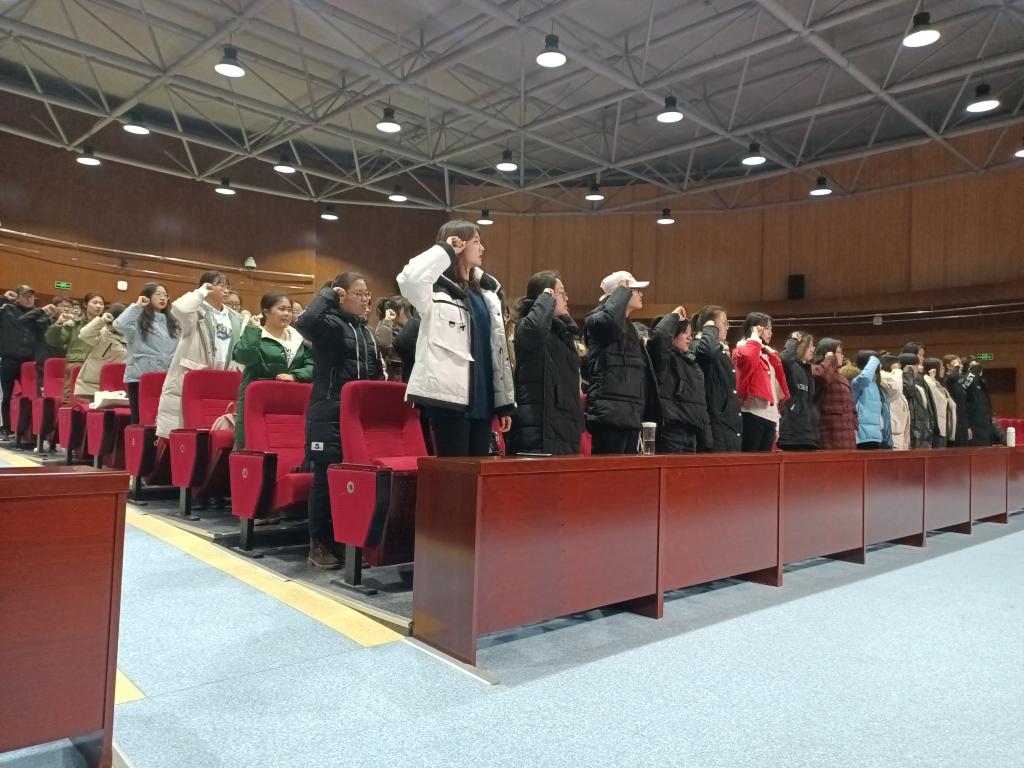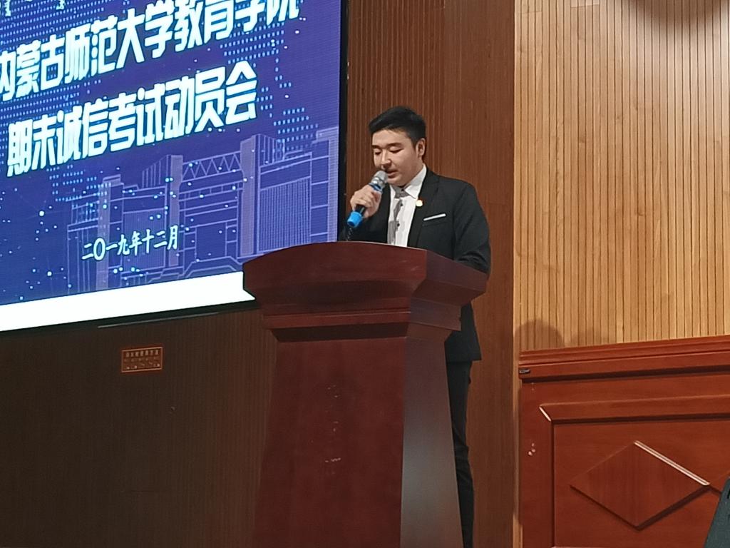 为严肃考风考纪,加强员工的诚信教育,12月9日14:30公司在图书馆二楼报告厅召开必一运动期末诚信考试动员大会,公司党委书记铁木尔、经理米俊魁、党委副书记兼副经理王利、副经理边琦、学工组于国佳老师、孙悦老师、张玉老师、苏日娜老师、赵元韬老师、文山老师、教务办李嘉峪老师、2018级和2019级部分员工参加本次大会。大会由王利副书记主持。