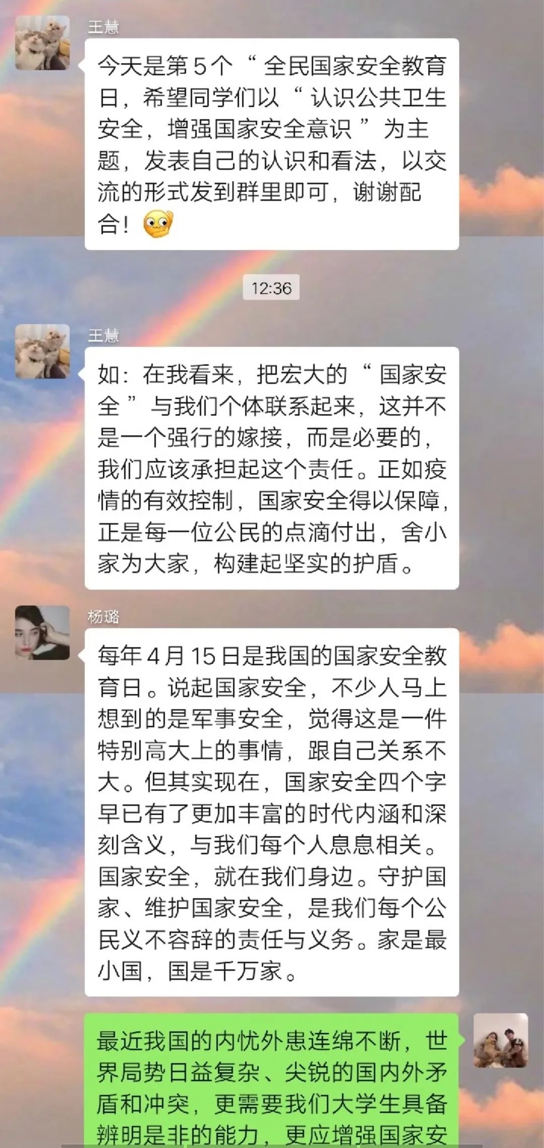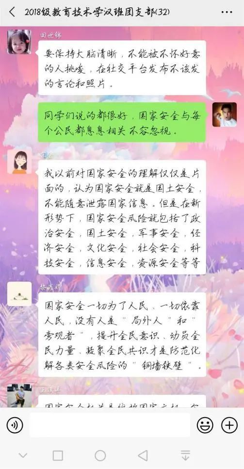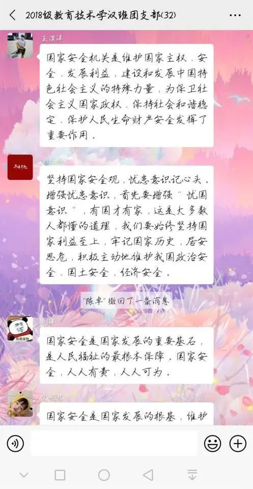 此次的团日活动,让我们意识到维护国家安全, 人人都是主角,国家安全不仅仅是国家的责任,更是我们每一个青年的责任。我们也应该为国家安全而努力,不断提高国家安全法治宣传的影响力和传播力!