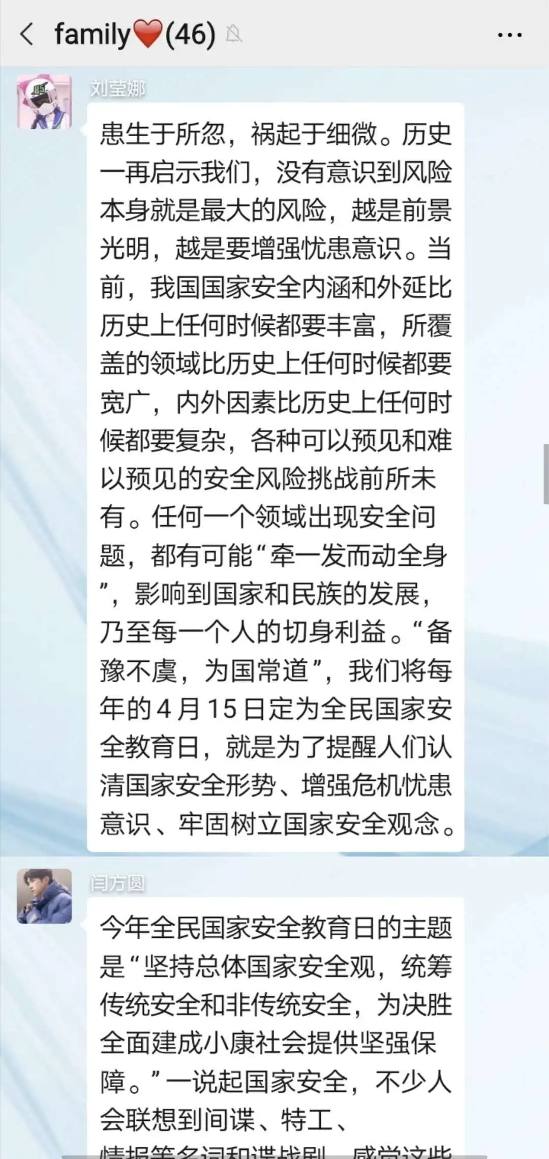 4月15日是国家安全日,在当前时代的新形势下,国家安全风险包括了政治安全,国土安全,军事安全,经济安全,文化安全,社会安全,科技安全,信息安全,资源安全等等。以前以为国家安全离我们很远,其实我们生活中处处都存在与国家安全密切相关的事情,比如这次疫情就属于现代公共卫生安全。每一次危机都伴随着机遇和挑战,我们应该不断反思,总结历史经验,国家安全问题不容小觑。