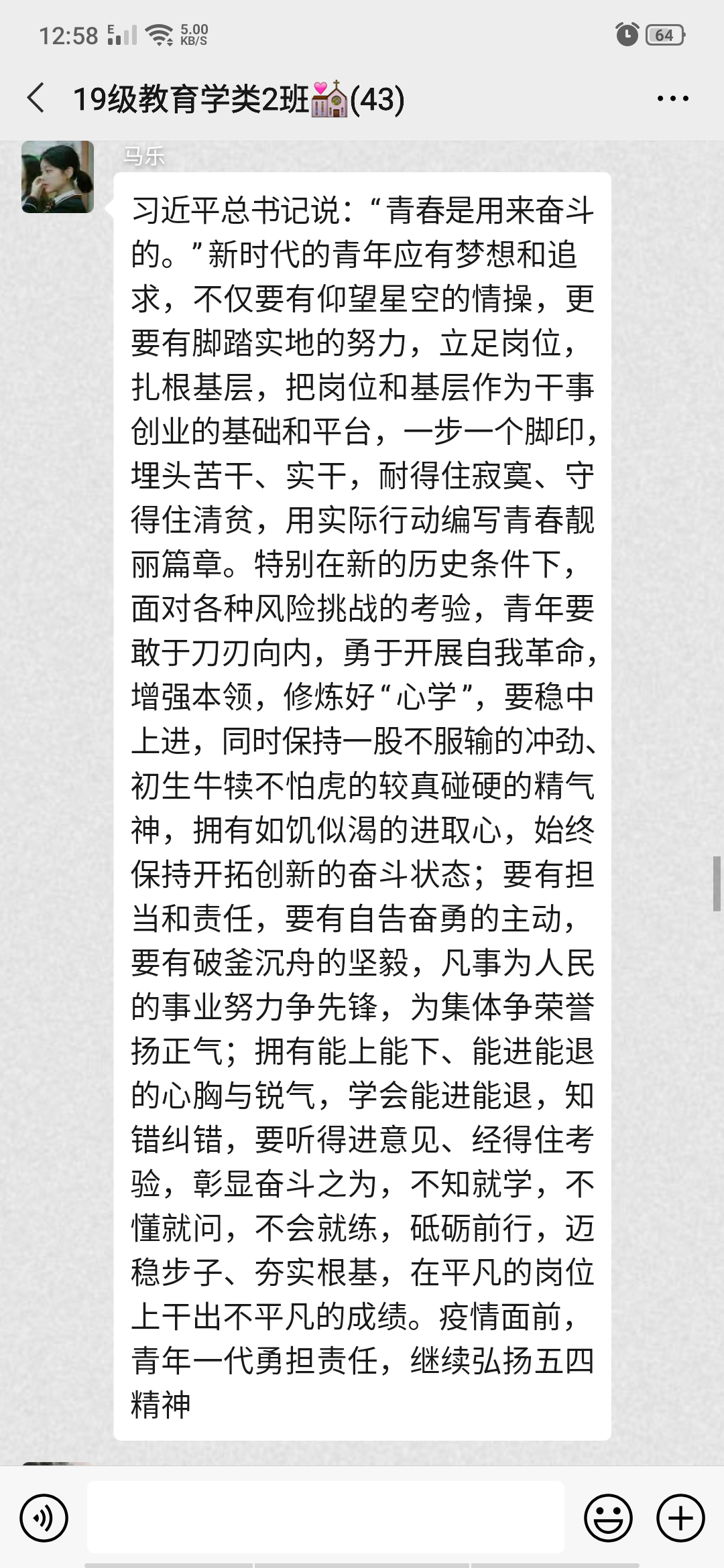 在五四青年节到来之际,作为新时代的青年一代,我们应该肩负起新时代的责任与担当!唱响时代最强音!