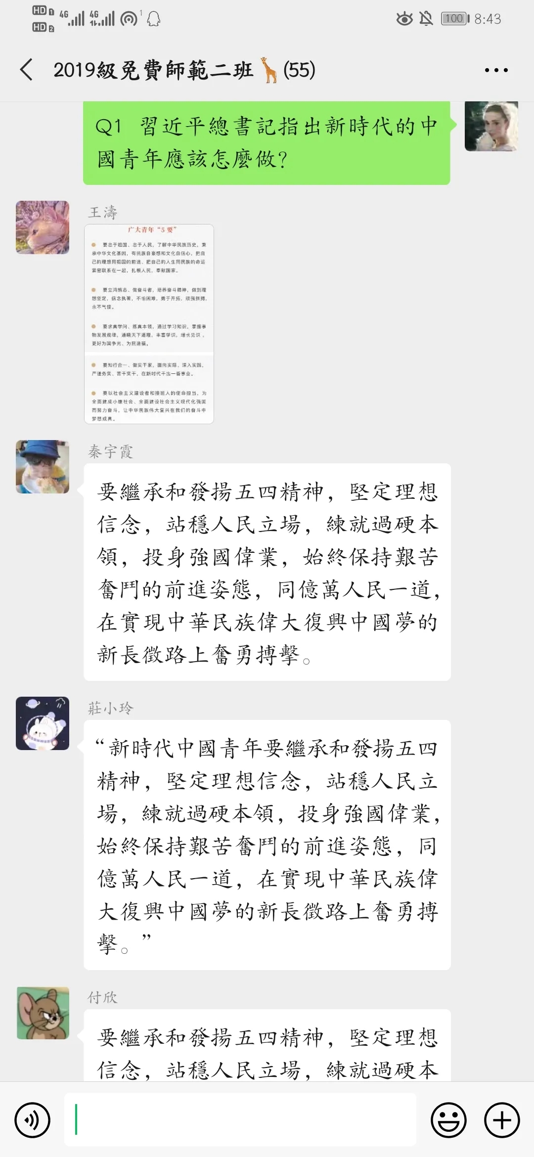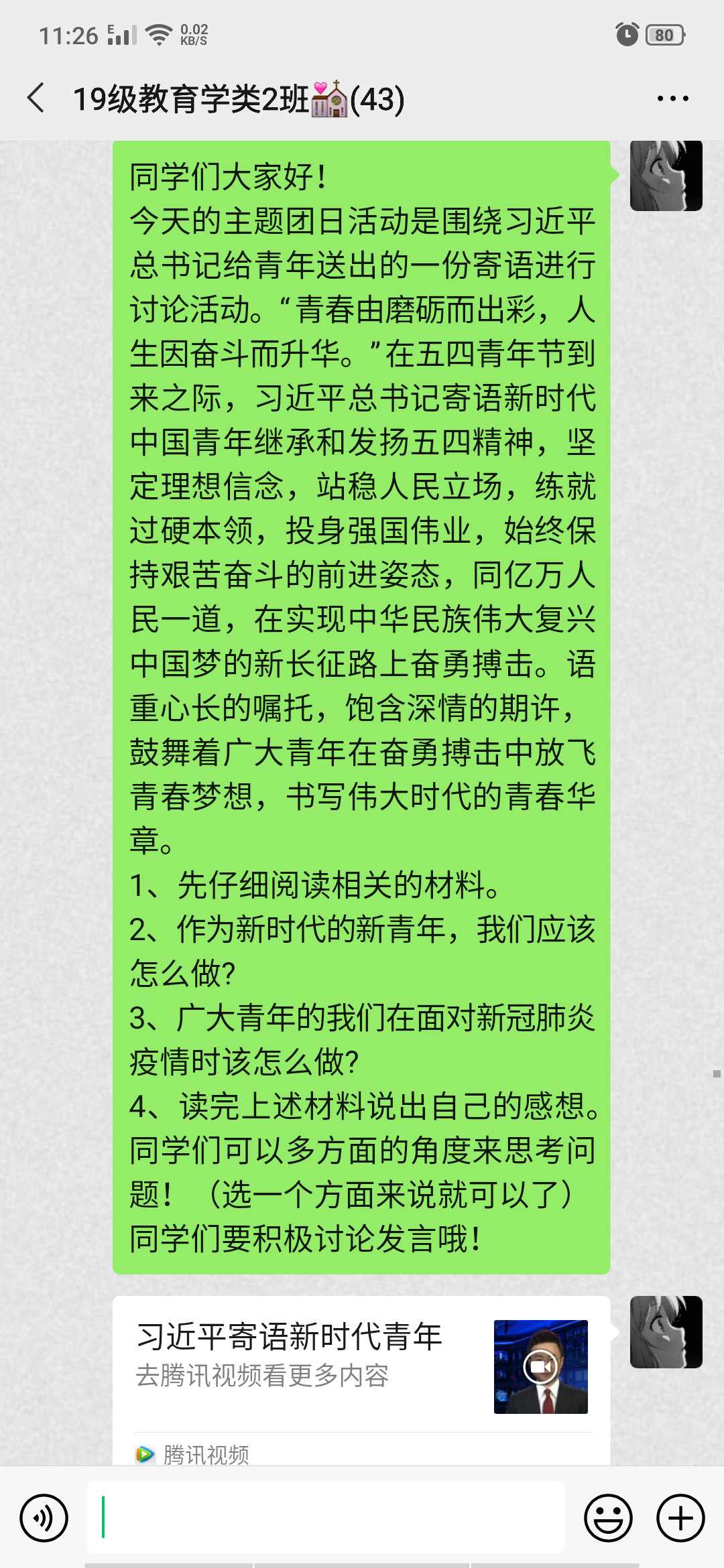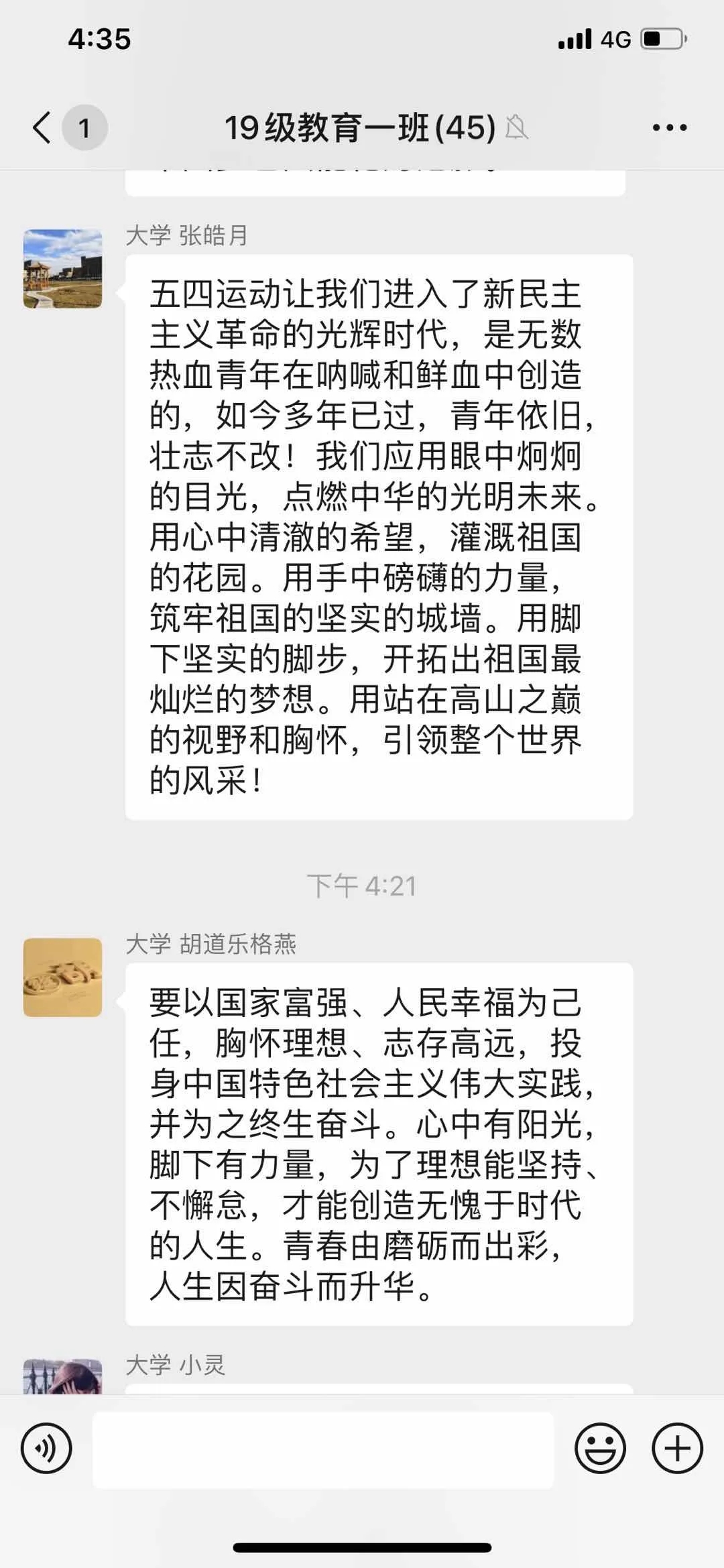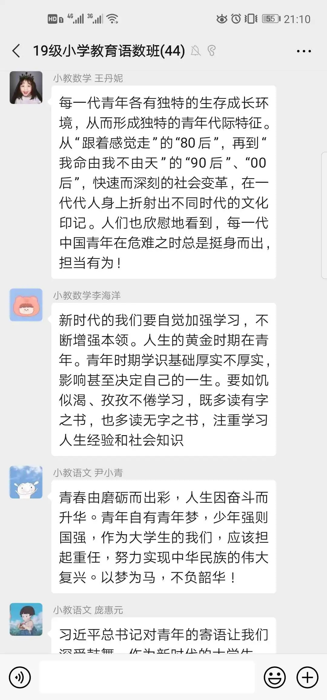 习近平总书记在5月3日寄语新时代青年,强调要坚定理想信念、站稳人民立场、练就过硬本领、投身强国伟业,向全国各族青年致以节日的祝贺和诚挚的问候。据此,必一运动组织开展学习近平总书记寄语精神的团日活动,通过交流分享、主题讨论等形式,让同学们贯彻学习近平总书记寄语,积极弘扬五四精神,激发同学们的学习动力、创造活力,坚定理想信念,真正理解“青春由磨砺而出彩,人生因奋斗而升华”。