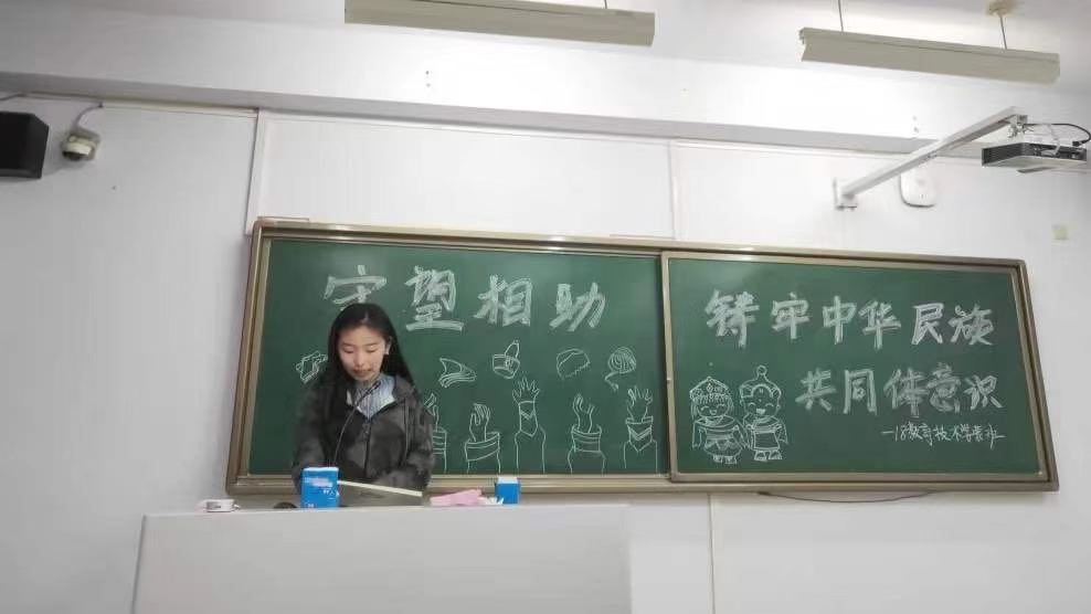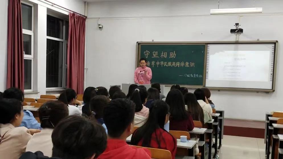 今天,我们2017级教育学班集体共同演唱了民族团结歌曲《爱我中华》。这首歌在把五十六个民族比作“鲜花”的基础上,又把五十六个民族的同胞比作“兄弟姐妹”,唤出了五十六个民族的共同心声:“爱我中华!”,深刻地反映出我国各民族亲密团结的深厚情感,极大地激发了同学们的爱国热情。我们班集体也是由多个民族的同胞组成,在大学的学习与生活中,我们情同手足,亲如一家,是一个多民族和谐共处、互帮互助的大家庭。一曲唱罢,同学们心中无不激起深深的民族友谊之情。即使习俗不同,语言不同,我们心里都烙印着一句话:“爱我中华!”