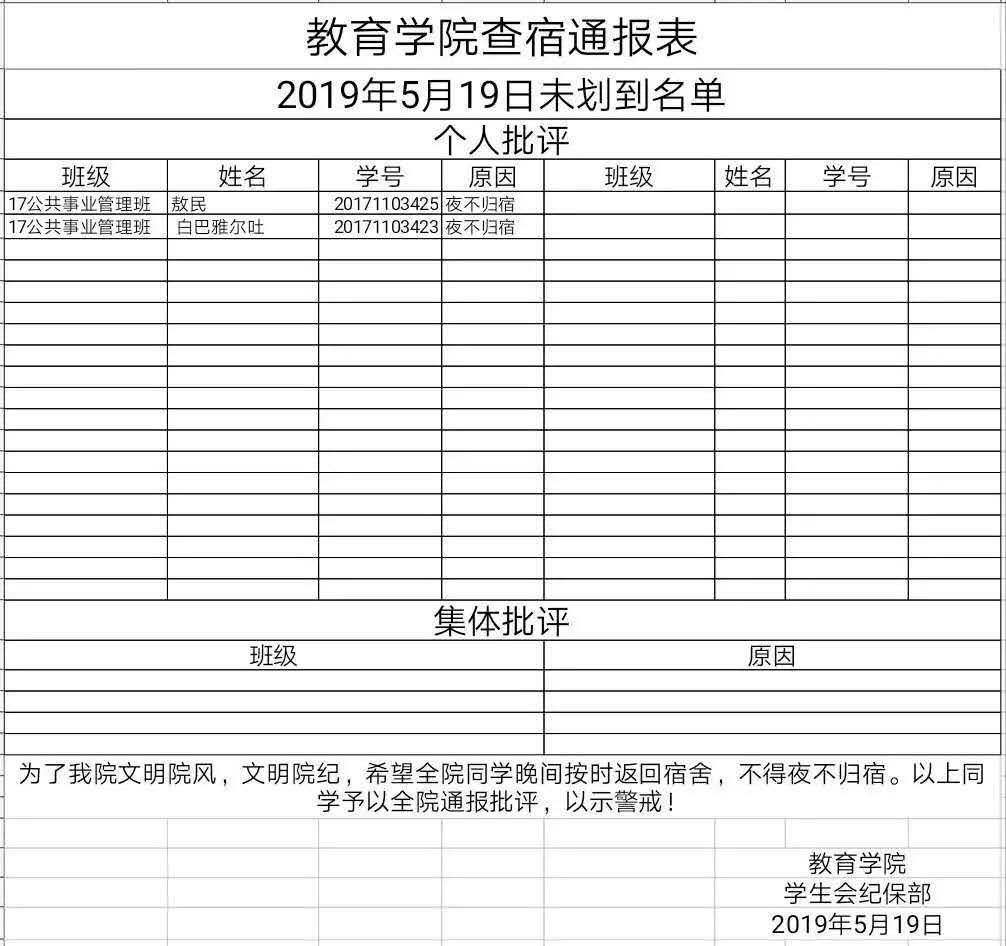 必一运动查宿通报表