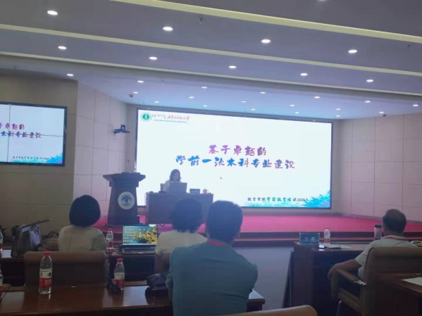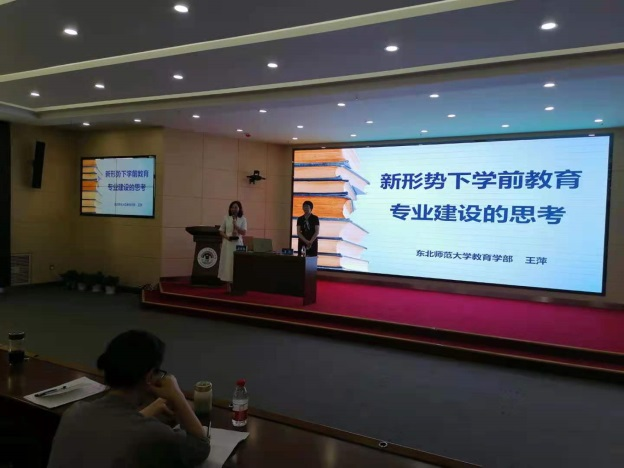 王萍作了《新形势下学前教育专业建设的思考》的主旨报告。王教授从百年间公司样态的变化出发,引发未来我们的教育需要培养什么样的人,强调在师范专业认证理念的指导下,从通识课程、专业核心能力课程、全程实践课程、专业技能课程等方面加强学前教育课程建设,推动“员工中心”的教学方式、多元化的考核评价的教学改革。
