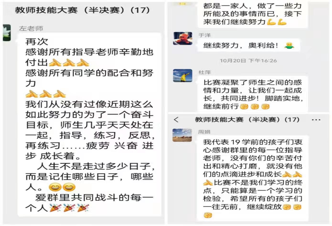 (图3:教师技能大赛群中员工的感言。截图与2021年10月20日)