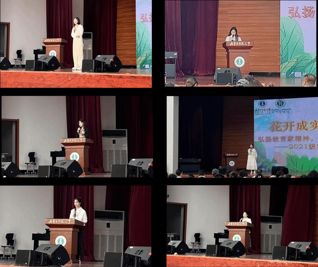秦佳硕、张燕、李想、董舒婷、赵晨洋及谭雪等2021级不同专业的同学分别从实习收获、教育热爱与追求、教师道德与员工发展、实习心路历程及教师责任与爱心等角度分享自己的实习心得。同学们还表演了《童年的歌》《蒙古舞》,《青玉案》《吉祥三宝》《闪耀吧!青春的火光》《森林狂想曲》《送你一朵小红花》等文艺节目。活动展现出老员工积极向上、阳光自信的精神风貌和扎实过硬的专业技能。