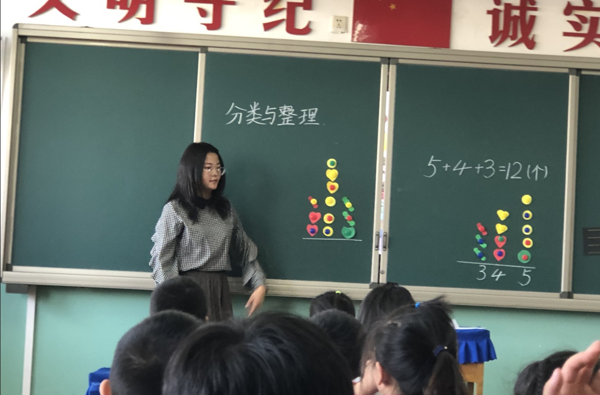 光阴似箭,不知不觉来到乌海市海勃湾区第五小学已经一个月了。在这段时间里,我拥有了人生好多个第一次:第一次以老师的身份正式站上讲台,在四十多位孩子们面前强忍紧张、兴奋,带着微微的颤音领读单词,故作镇定地讲授课本知识;第一次听到孩子们用稚嫩的声音称我为Miss Yan;第一次将三大摞练习册一本一本判完,看着自己用红色钢笔打的日期,成就感油然而生。(图一、二、三)