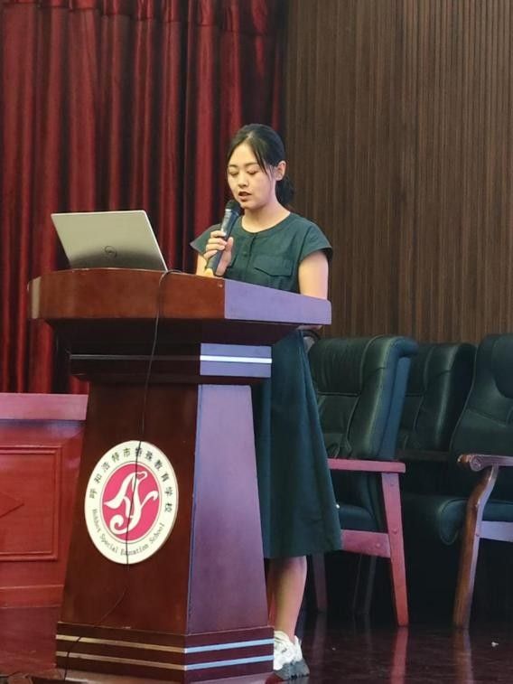 实习生们分组分享了在实习期间的收获和感悟。优秀实习生代表赵佳鑫同学回忆了与孩子们相处的点滴,感受到爱与阳光,提醒自己要谨记特殊教育教师的职责与使命。王艺璇同学反思了实习期间的成长,表示将这段实习视为成长路上重要的一环。实习生代表张晶晶向带教老师和指导老师表达了诚挚的感谢,认为这段实习经历将成为职业生涯中宝贵的财富。