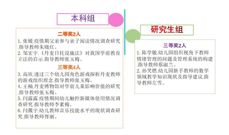 此次获奖,是学前教育专业作为教育部卓越幼儿园教师培养计划改革项目承担者,在公司、公司的统筹领导下,在全面推进国家一流本科建设中,坚持立德树人,践行产出导向,提升人才培养质量的阶段性建设成果。