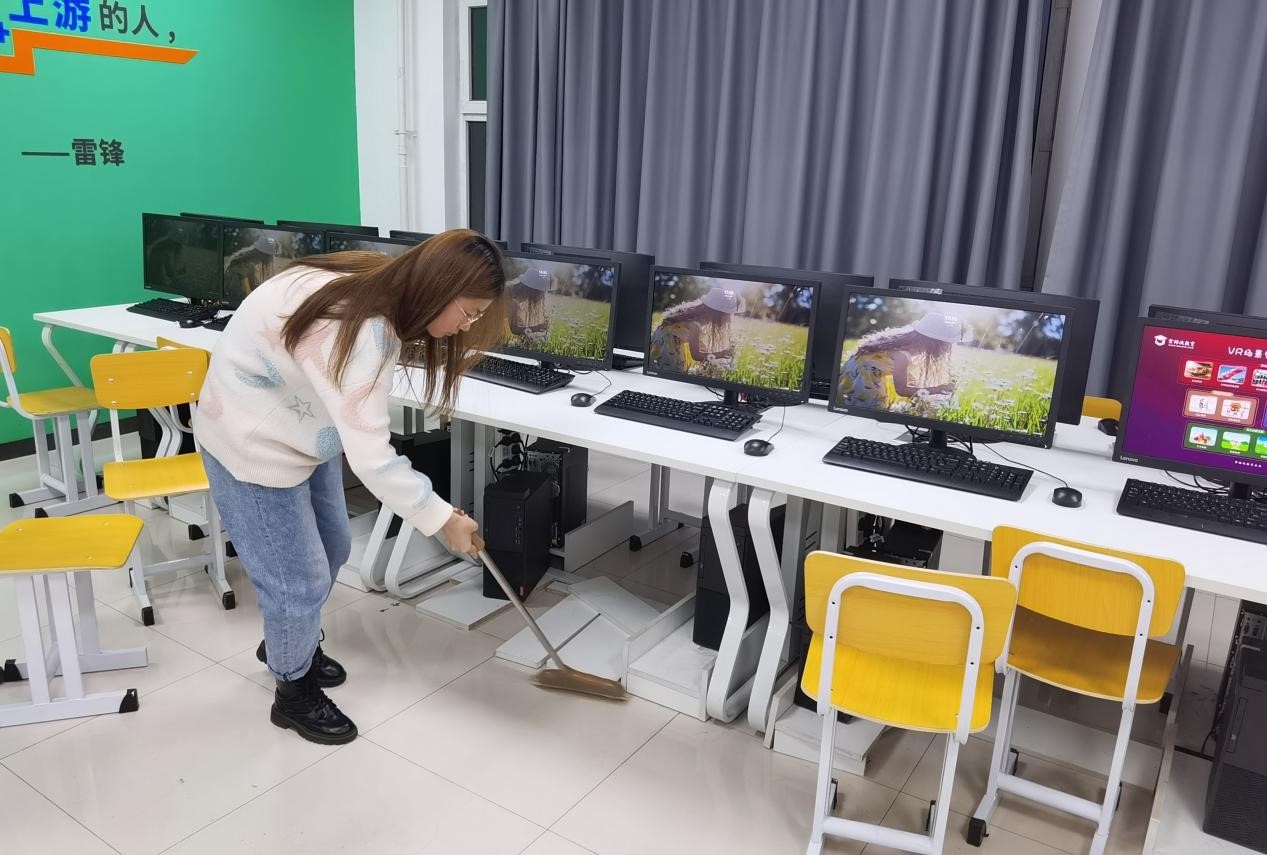 以劳树德、以劳增智、以劳强体、以劳育美。劳动教育是中国特色社会主义教育制度的重要内容,可以树德、增智、强体、育美,具有综合育人价值,是全面培养体系的重要组成部分。公司本学期组织教育技术专业2020级、2021级本科生对科技楼机房进行清扫劳动教育实践活动。
