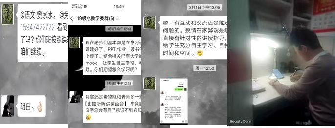 “停课不停学”这简单话语的背后无疑是无数老师们的付出与努力,作为18学前班的学习委员,我无疑充当了师生之间沟通的桥梁,这也使我能够有机会切身体会到到“停课不停学”背后老师们的付出与努力。张玉梅老师教授我们学前儿童科学教育这门课程。尚未接近原定开学日期时,张老师便考虑到员工的学习问题,她很早便与我联系,讲述她的授课构思,同时寻找合适的教学平台为大家上课。连续几天,张老师为了试验授课软件的性能,而从上午忙到下午一两点钟,最忙的时候,连午饭都来不及吃。在正式试课的前一天夜里,接近凌晨,张老师还在做试播工作,而这一切努力都是为了让同学们获得更好的学习体验。
