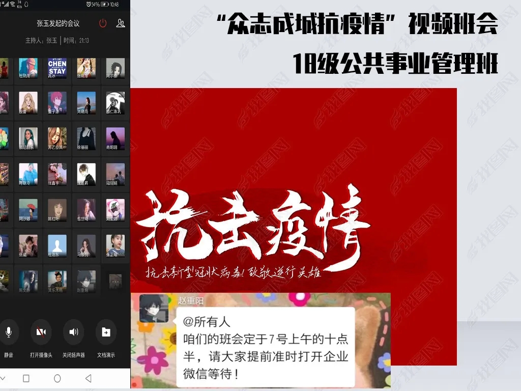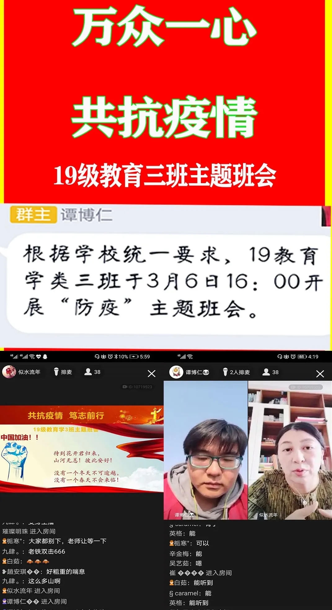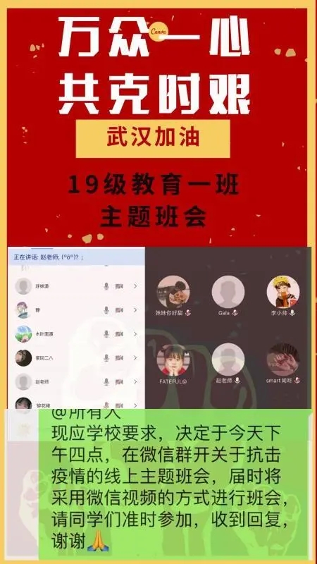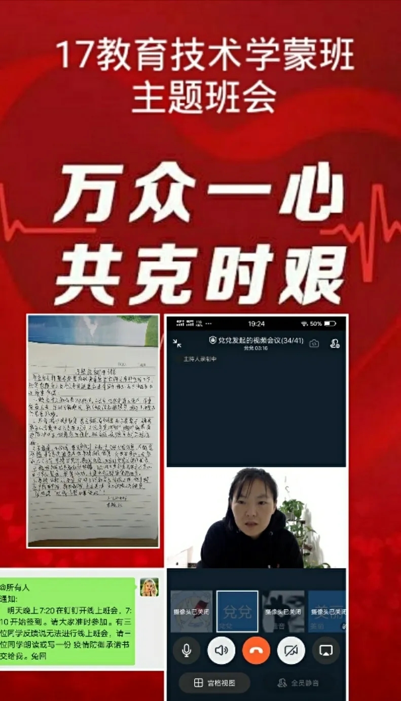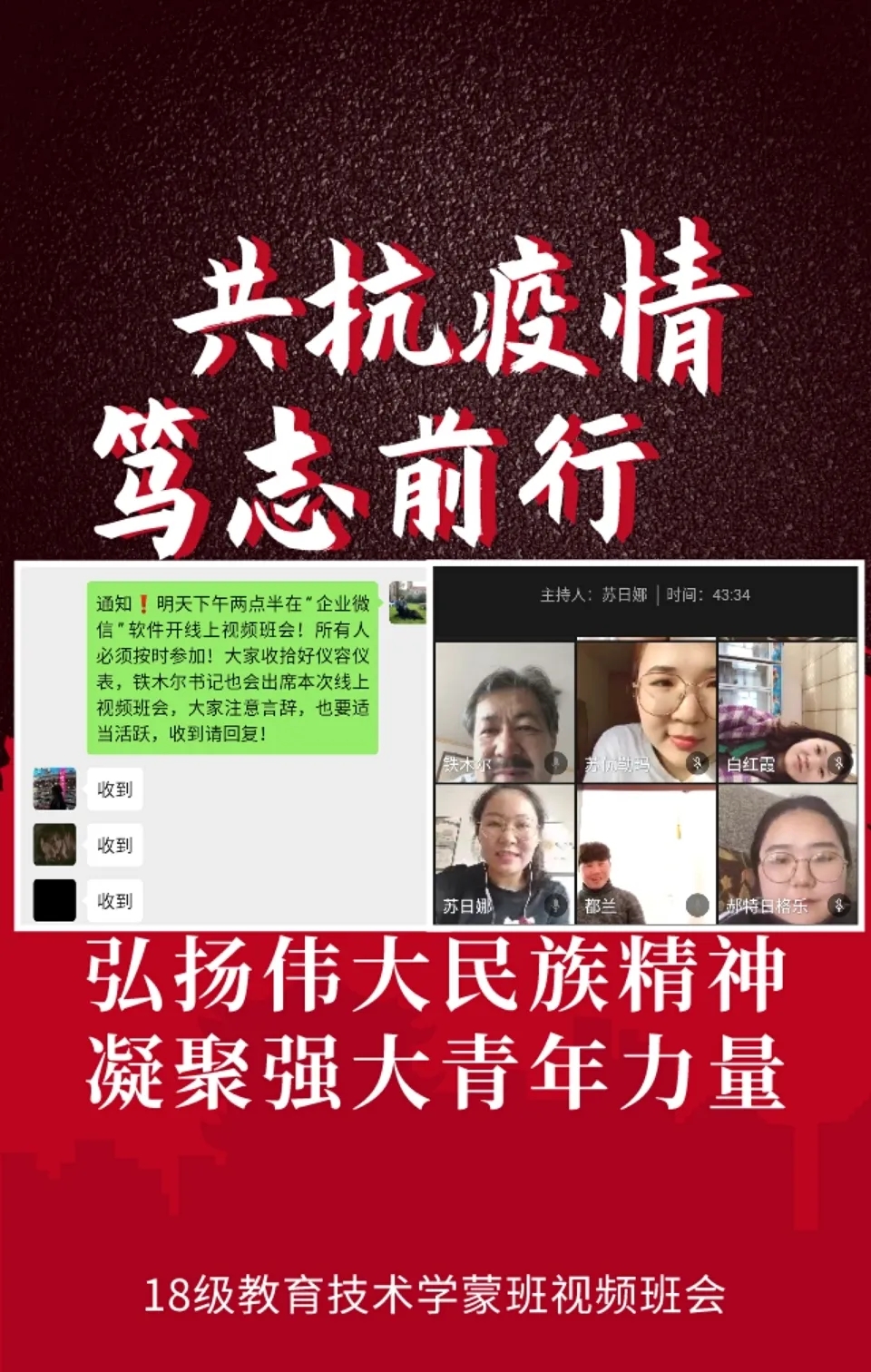 为深入贯彻落实习近平总书记关于打赢疫情防控阻击战重要指示批示精神,保障防控疫情期间“停课不停学”,充分发挥网络育人功能,根据自治区和公司有关工作部署,必一运动各班级组织召开“共抗疫情,笃志前行”为主题的疫情防控线上班会。