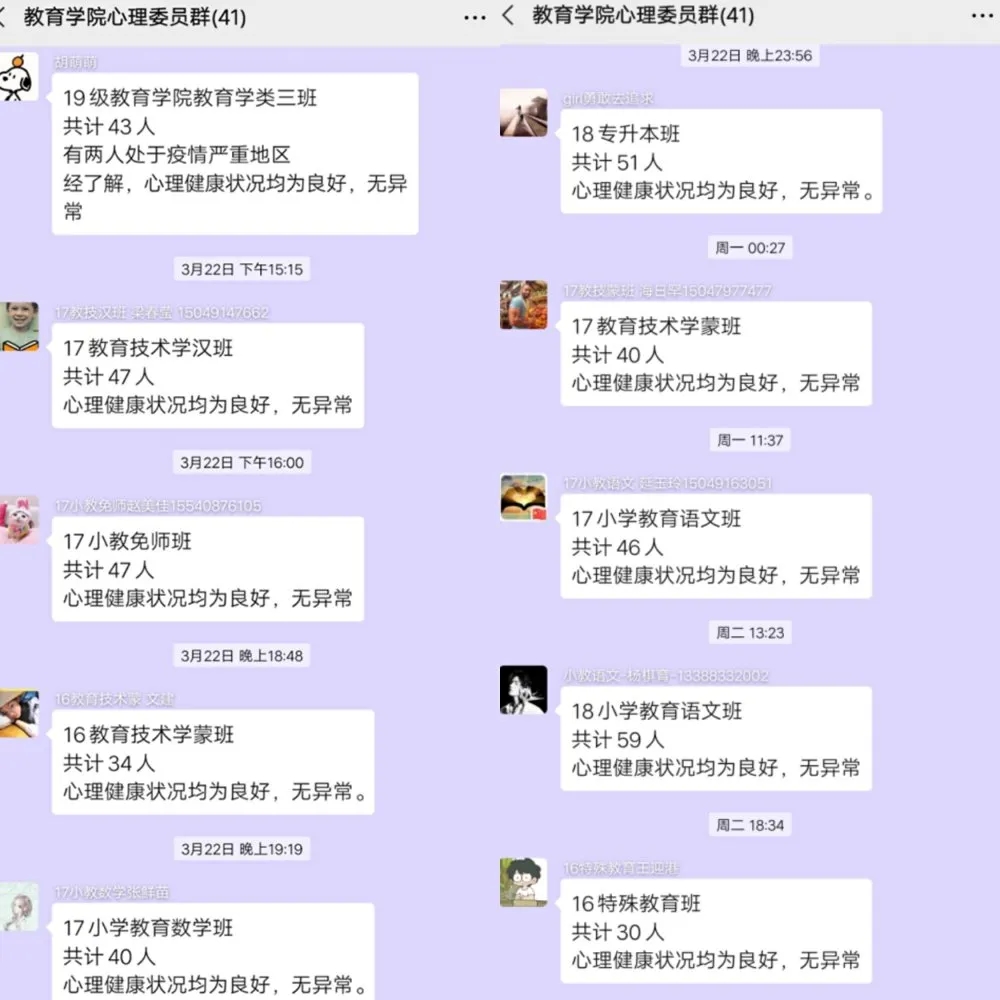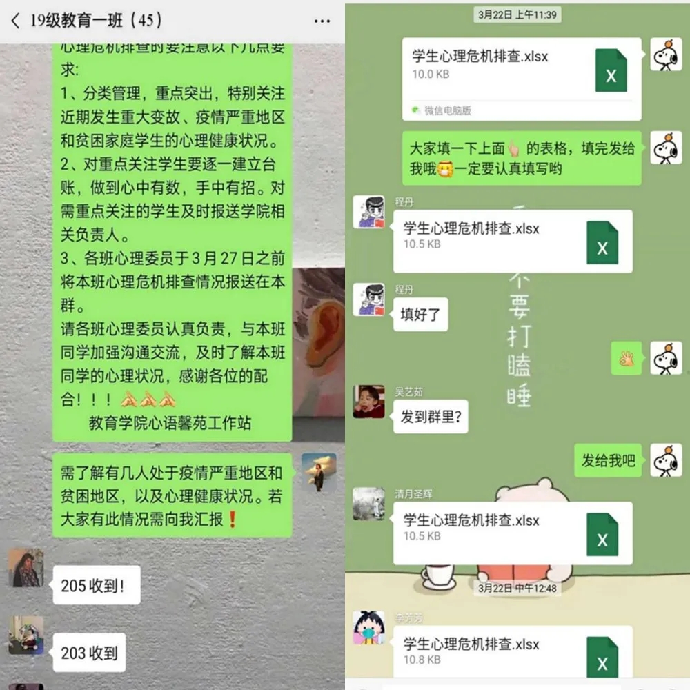 为贯彻落实公司开展疫情相关心理辅导与危机干预工作的通知精神,进一步了解并主动帮扶有潜在心理危机的员工,防范于未然,公司积极开展员工心理危机排查工作,公司心语馨苑工作站、各班心理委员积极组织,顺利开展员工心理危机排查工作。