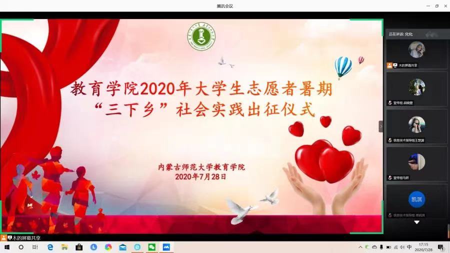 本次暑期社会实践活动意义非凡,希望每一位志愿者珍惜此次实践活动机会,在未来天中调整好自己的状态,实践组成员积极备课,各组成员积极沟通互相配合,充分调动员工的积极性、主动性、创造性。各位志愿者要严格遵守疫情防控,圆满完成此次的云端“三下乡”活动。
