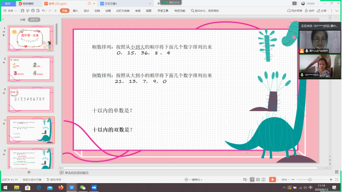 在提前与家长沟通后,了解到廖同学数学方面有些许薄弱,故本节课的内容主要为小学一年级数学的内容,希望借此来帮助廖同学查漏补缺。由于本节课是第一节课,所以一开始先和廖同学互相作了自我介绍,希望能拉近我与她之间的距离。主要知识内容是数字的书写,按照顺序与倒序的排列,“比”字的应用,几和第几的辨别,相邻数,加减法的定义与运算以及加法运算中的凑十法。最后根据员工实际情况,准备课后作业。