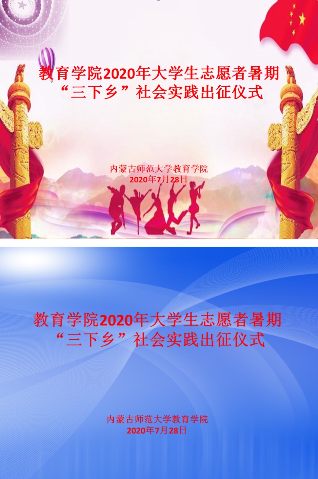 2020年7月28日晚上,公司举办了暑期云端三下乡社会实践活动出征仪式。提前一天,我们信息技术指导组着手制作出征仪式所需定屏。我制作了两版初稿。