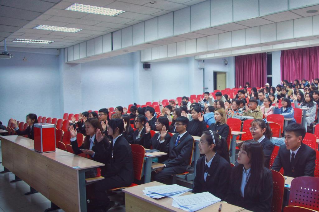 大会第二项议程:陈鹏同学宣读监票人建议名单和计票人建议名单。