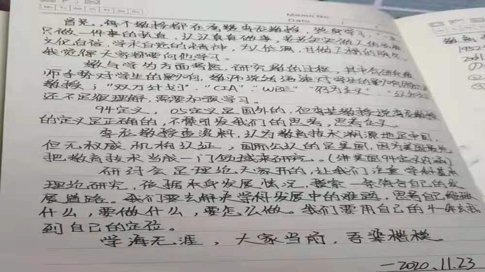 2020年11月23日,2020级教育技术学班就新时代教育技术团队建设暨李龙教授从教六十载学术研讨会进行交流心得体会。