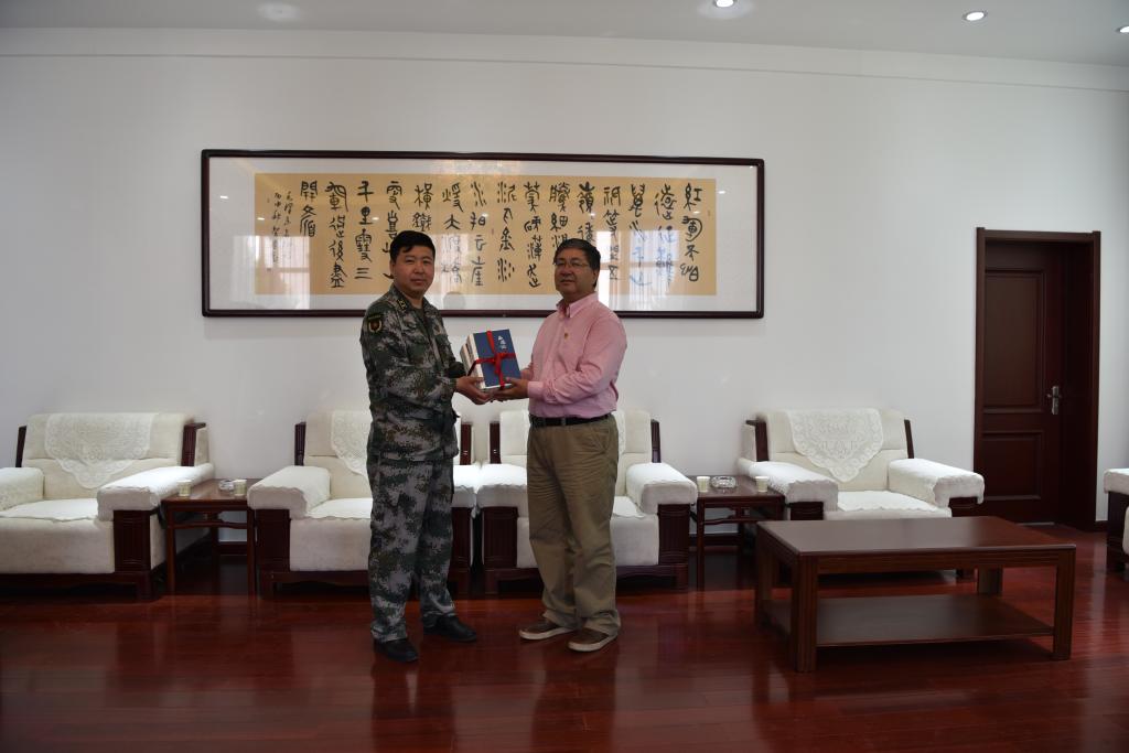 随后,全体老师走进内蒙古军区司令部参观学习。铁木尔书记、米俊魁经理向部队对本次活动给予的重视和支持表示感谢,指出此行的目的是学习部队的优良作风和规范化管理,并期望双方有更深层次的合作与交流并举行了赠书活动。