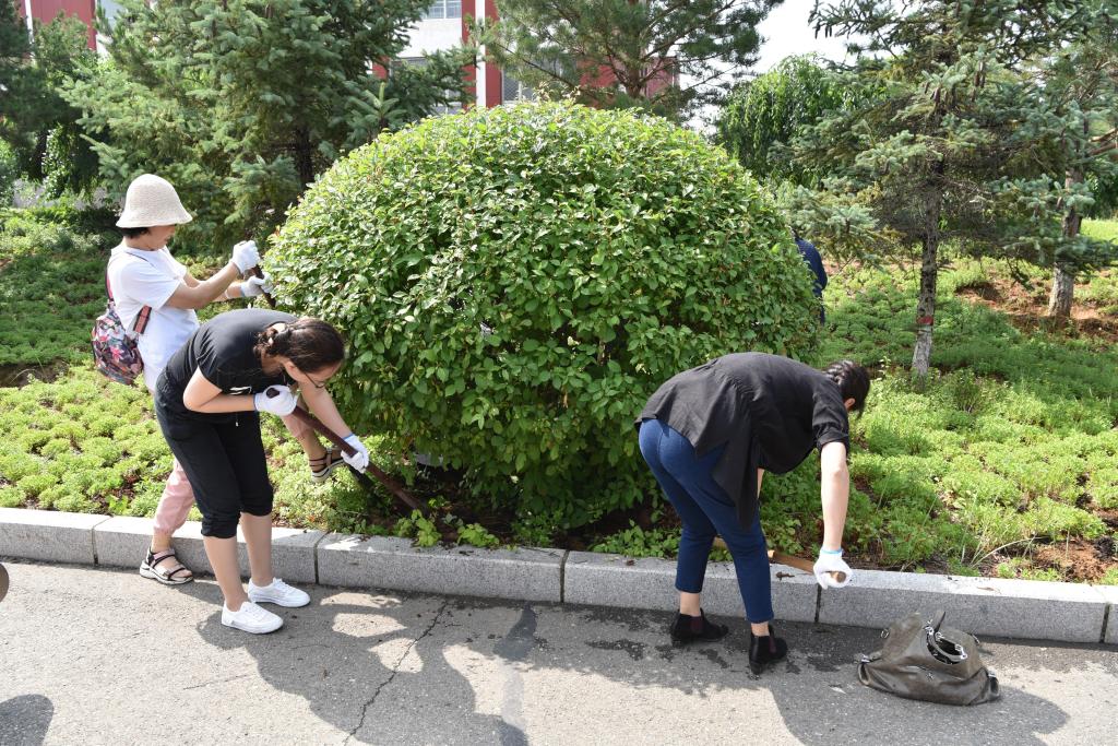 2021年6月25日上午,必一运动老师们和员工党员一起,在盛乐校区校园内组织开展了“我是师大一员,我为师大办实事”的义务劳动。必一运动师生在公司后勤集团同志们的帮助和指导下,分工协作、默契配合、干劲十足、认真规范地完成了一百多颗树的树坑修理工作。