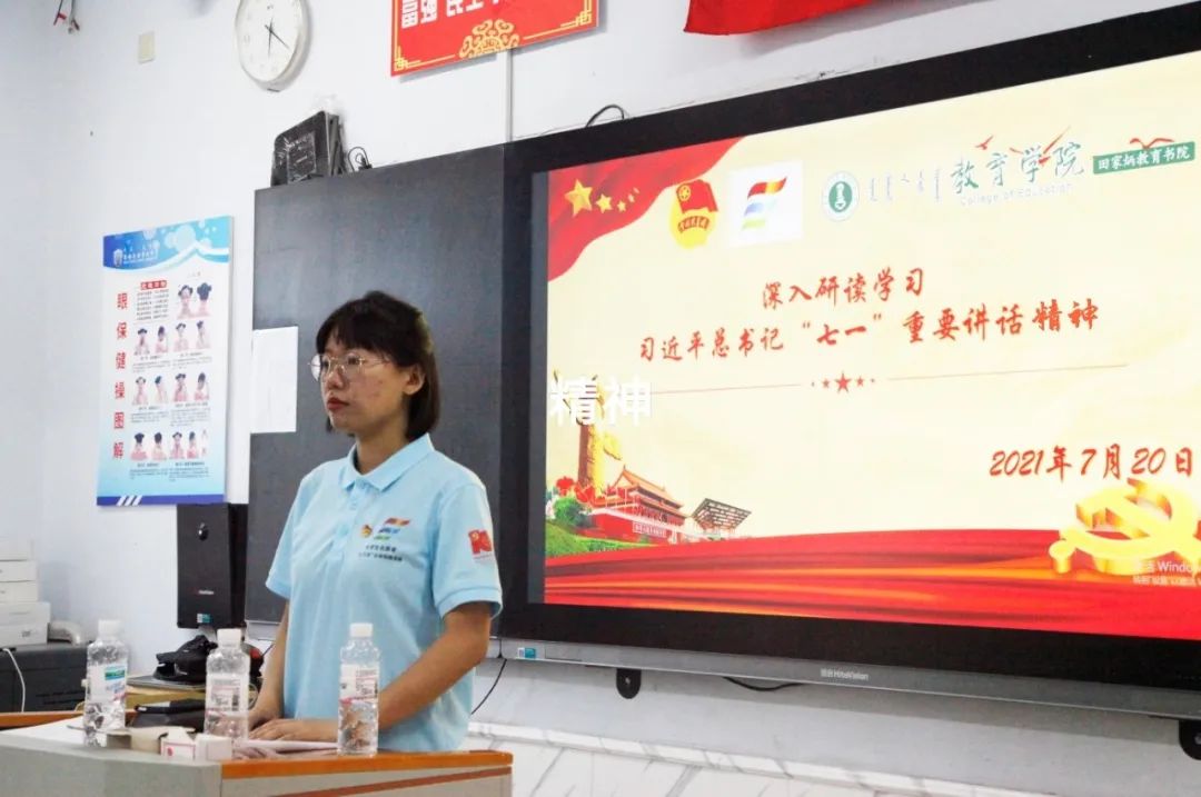 7月20日晚18:30,必一运动“三下乡”志愿者服务队师生在准格尔旗第九中学综合楼一楼教室深入研读学习习近平总书记“七一”重要讲话精神。