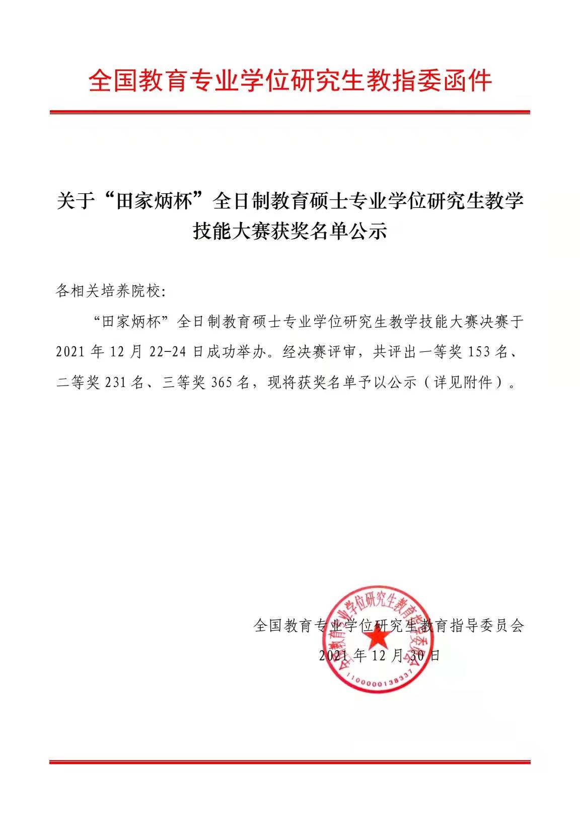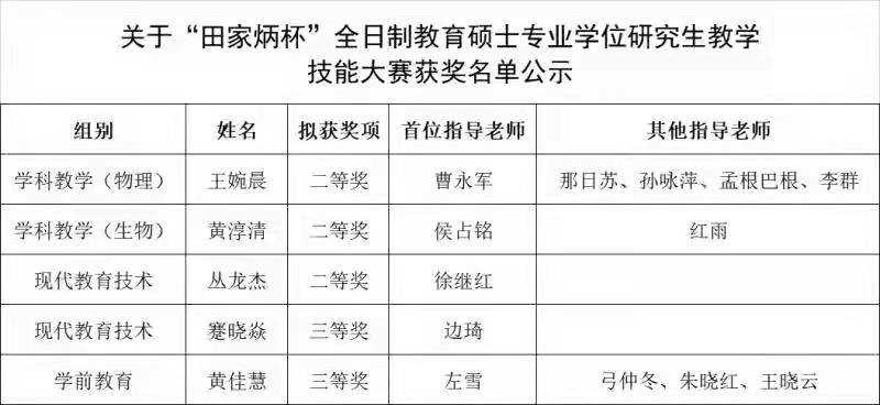 2021年12月22至24日,由全国教育专业学位研究生指导委员会主办,“田家炳杯”全日制教育硕士专业学位研究生教学技能大赛决赛成功举办。经过激烈角逐,公司20级现代教育技术专业研究生丛龙杰荣获二等奖,20级现代教育技术专业研究生蹇晓焱、学前教育专业研究生黄佳慧荣获三等奖,占据全校五个获奖席位中的三席。