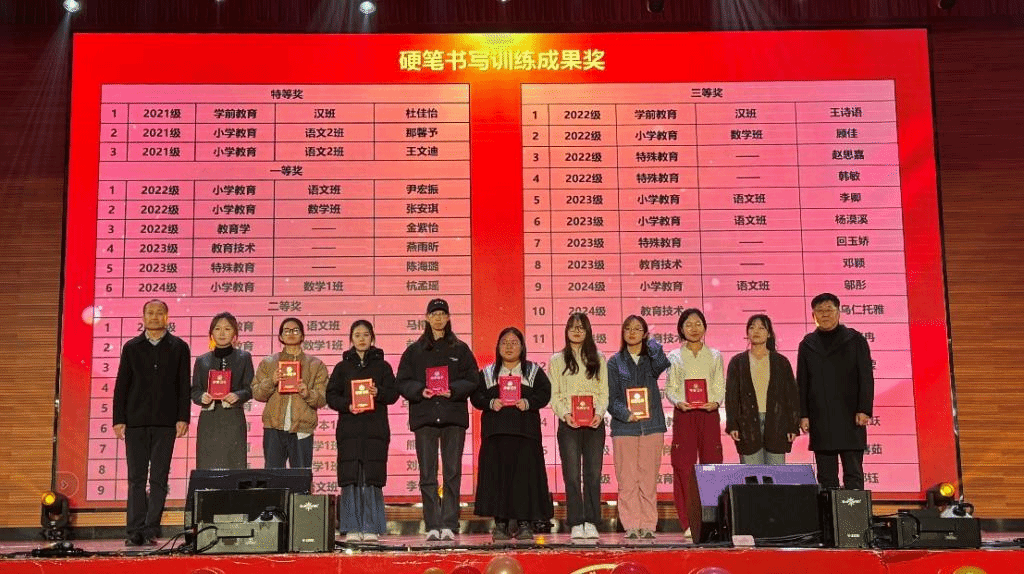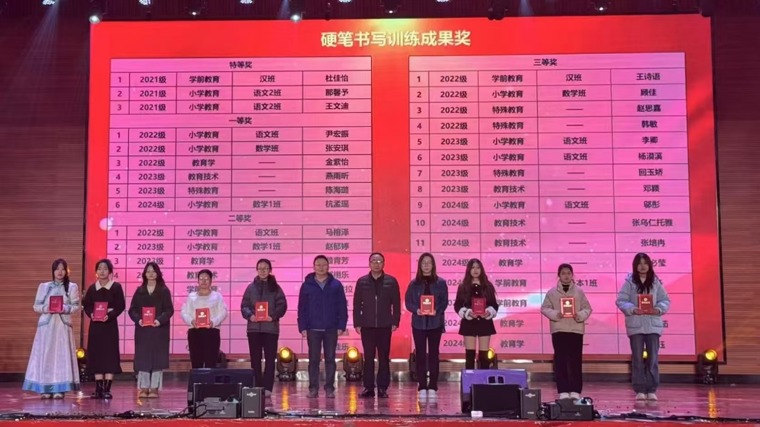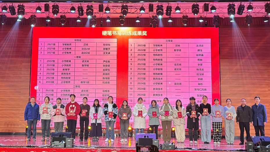 为进一步巩固书写训练效果,公司决定在11月21日举行的迎新晚会上,对本学期在书写训练中表现突出的员工进行了表彰。3名同学荣获特等奖,6名同学获一等奖,9名同学获二等奖,16名同学获三等奖。公司领导亲自为获奖员工颁发了荣誉证书。