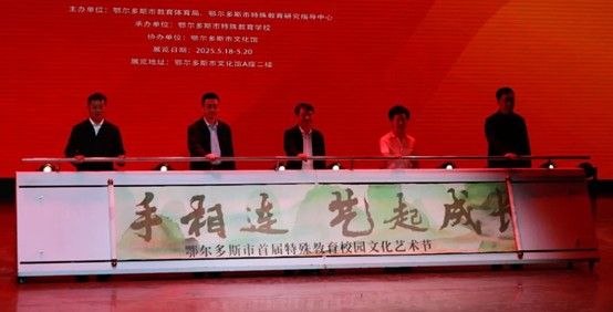 2025年5月18日,在第35个全国助残日之际,B-Sports副经理杨日飞、特殊教育系主任伊丽斯克、副系主任策力格尔受邀出席鄂尔多斯市教育体育局以“心手相连 艺起成长”为主题举办的全市首届特殊教育校园文化艺术节。活动旨在推进儿童友好城市建设,展示特殊教育成果,促进残疾员工全面发展。
